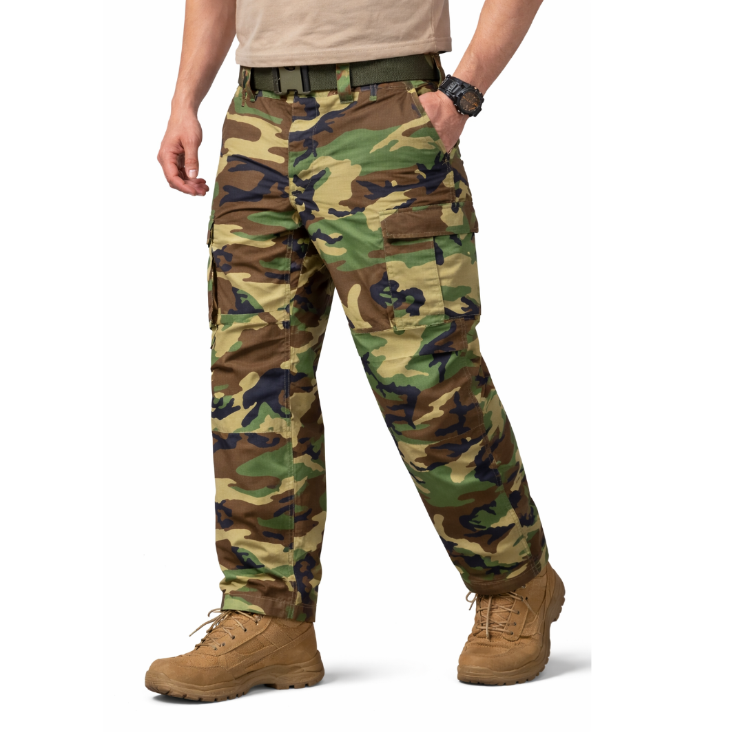 Классические брюки Helikon-Tex BDU — это тактический эталон прямого кроя, не сковывающий движений.Модель брюк выполнена из поликоттона 60/40 (215 г/м²) — быстросохнущего и износостойкого материала к истиранию.Важнейшая фишка — усиленные наколенники не изнутри, а за счёт двойного слоя ткани в этих зонах, что не создаёт жёстких складок и не натирает подколенную ямку.Ткань Rip-stop, образует характерную сетку из квадратов или ромбов, которая локально останавливает разрыв, не давая ткани расползаться дальше.Шесть пуговичных карманов, включая объёмные на бедрах, усиленные колени и ягодицы, регулируемый пояс с металлическими зажимами и шнуркидля утяжки на штанинах — всё это создано для полевой живучести.