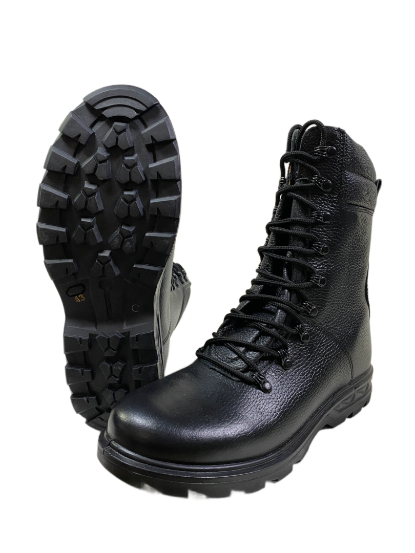 Уставные демисезонные берцы выполнены из натуральной, гидрофобной кожи, толщиной: 2,0-2,2 мм. Подкладка выполнена из натуральной кожи. Стелька двухслойная, анатомическая. Глухой клапан защищает от попадания внутрь воды и влаги.Литьевой метод крепления прочно соединяет верх и подошву из термостойкой резины.Подошва имеет хорошие амортизационные свойства,самоочищающийся протектор подошвы выполнен из маслобензостойкой резины