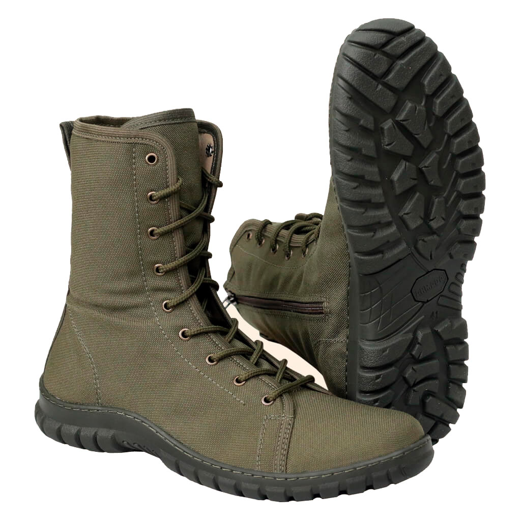 Летние берцы «КЕДА М-1203 О» выполнены в цвете «Олива» и прекрасно маскируют в лестном массиве.
