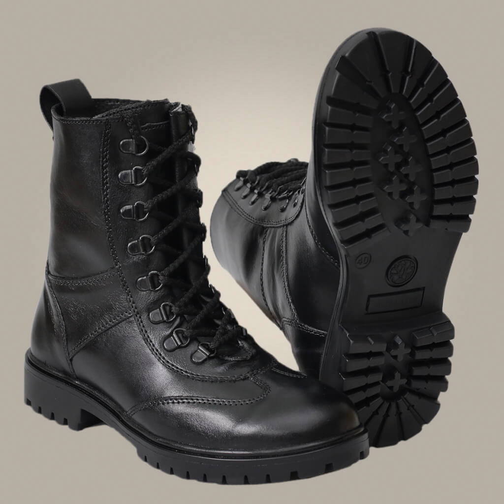 Натуральная кожа в черном цвете идеально подойдет для повседневной носки и выполнения поставленных задач, повышенной сложности, с комфортом и в тепле.