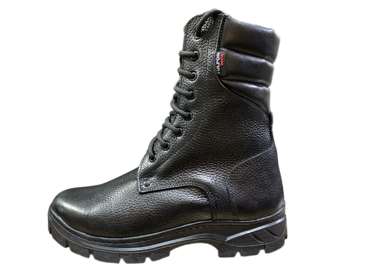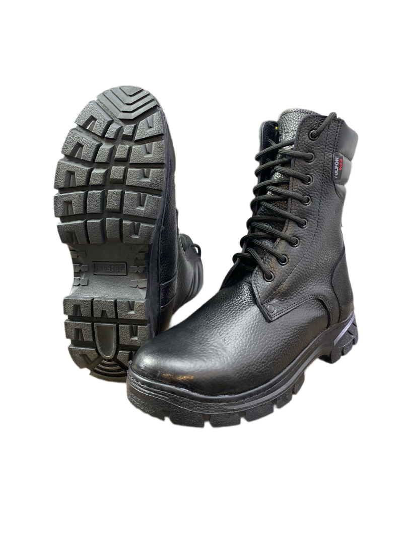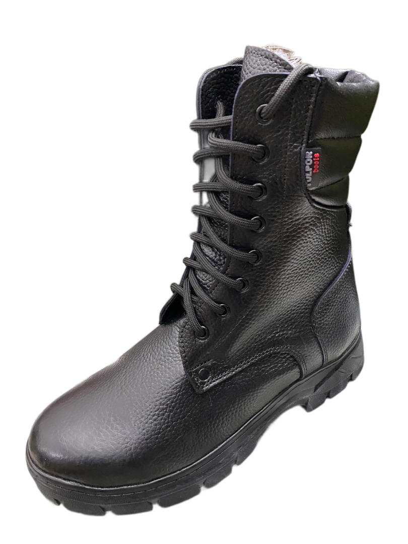 Зимние берцы из плотной зернистой свиной кожи с усиленным мысом и задником идеально подходят для холодного времени года. Внутри утеплены плотным искусственным мехом. Оснащены металлическими люверсами для надежной фиксации шнурков. Проклеены и прошиты по всему периметру для максимальной долговечности.