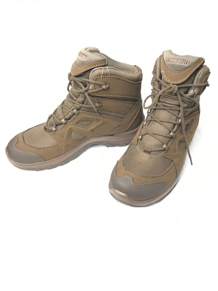 Треккинговые ботинки фирмы «ELKLAND» изготовлены из водостойкого полиэстера и микрофибры высокой плотности. Внутренняя часть ботинка выполнена из синтетических нитей – Mesh, а также мембранной ткани, которые позволяют ногам оставаться сухими даже в очень влажную погоду, а также быть комфортными в носке при температуре от 0 до + 30 градусов.