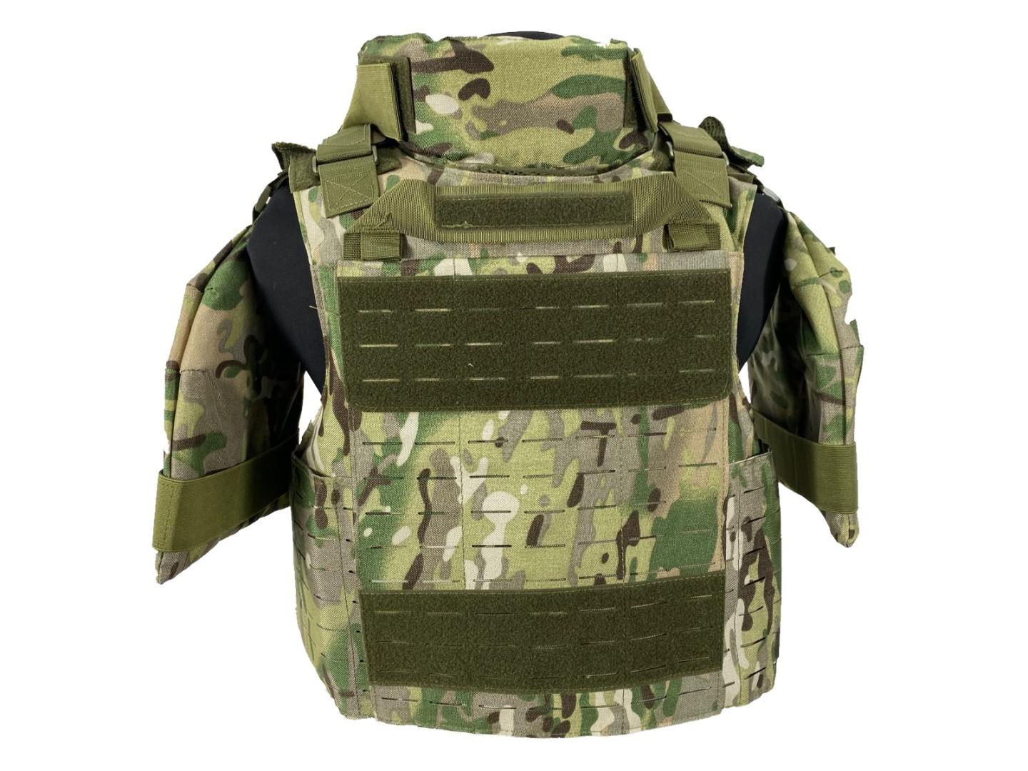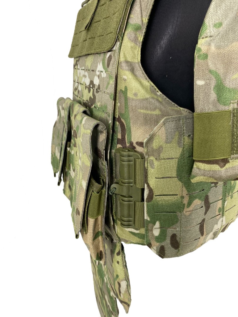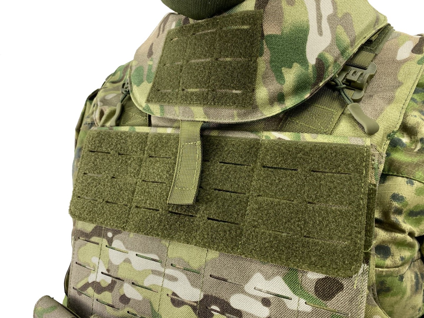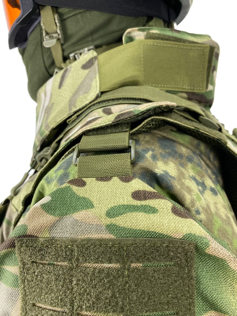 MOLLE/PALS-система: Лазерная нарезка петель снижает вес жилета и позволяет крепить тактическое снаряжение (подсумки, аптечки, фляги, рации).