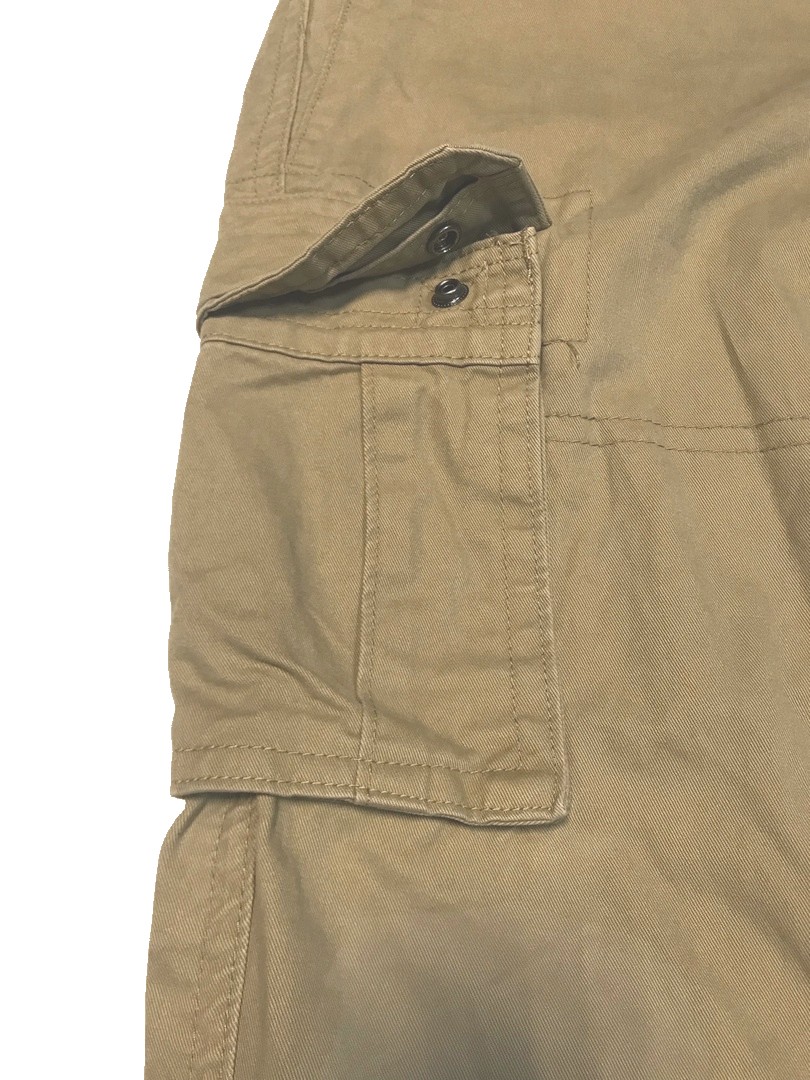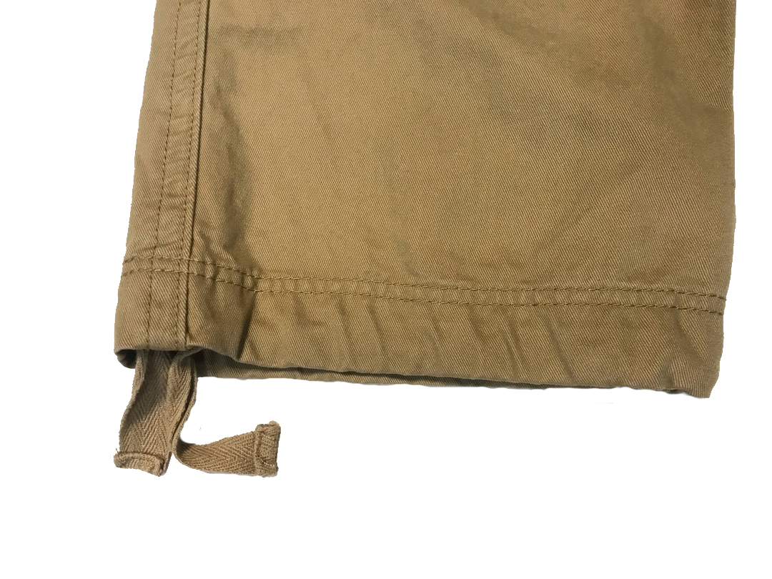 Брюки Cargo с ремнем, из мягкой хлопковой ткани.В верхней части брюк есть толстая шнуровка для утяжки, ширинка на молнии защищённая плотной тканью. Шесть карманов: два поясных глубоких кармана, два задних вшитых кармана прикрытыx тканью, два боковых накладных кармана закрывающихся при помощи кнопок, в нижней части брюк находится шуровка для утяжки.