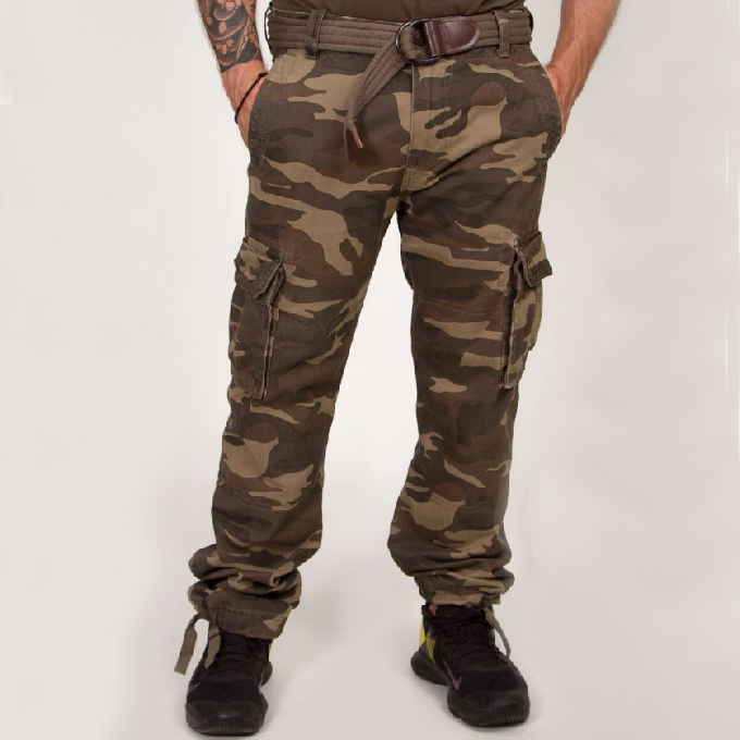 Брюки Armed Forces в камуфляжной расцветке износостойкие, с усиленными швами в области коленей, с утяжками внизу брюк — это