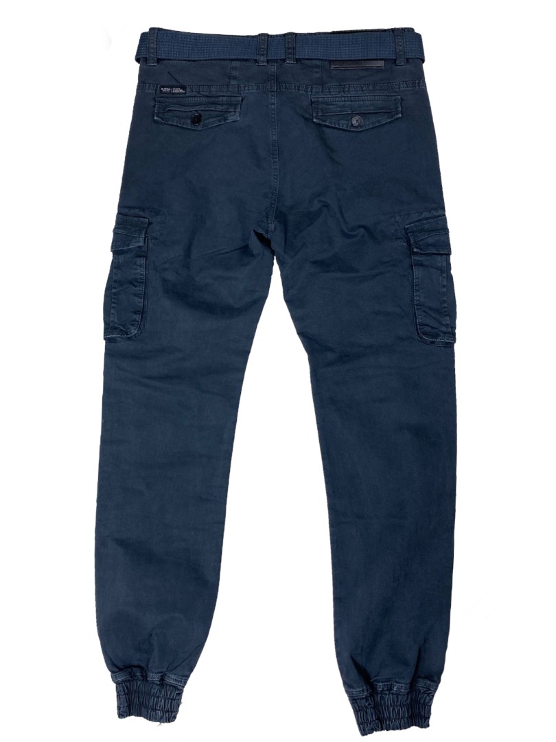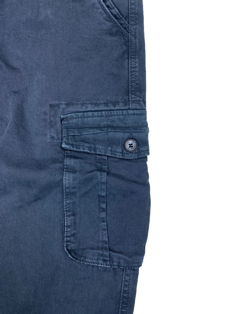 Брюки в стиле "Милитари" из стопроцентной хлопковой ткани. На брюках  расположены шесть карманов, два задних накладных кармана на кнопках, два прорезных кармана на бёдрах, два боковых, накладных кармана на кнопках. Брюки застегиваются при помощи пуговицы, ширинка-молния.