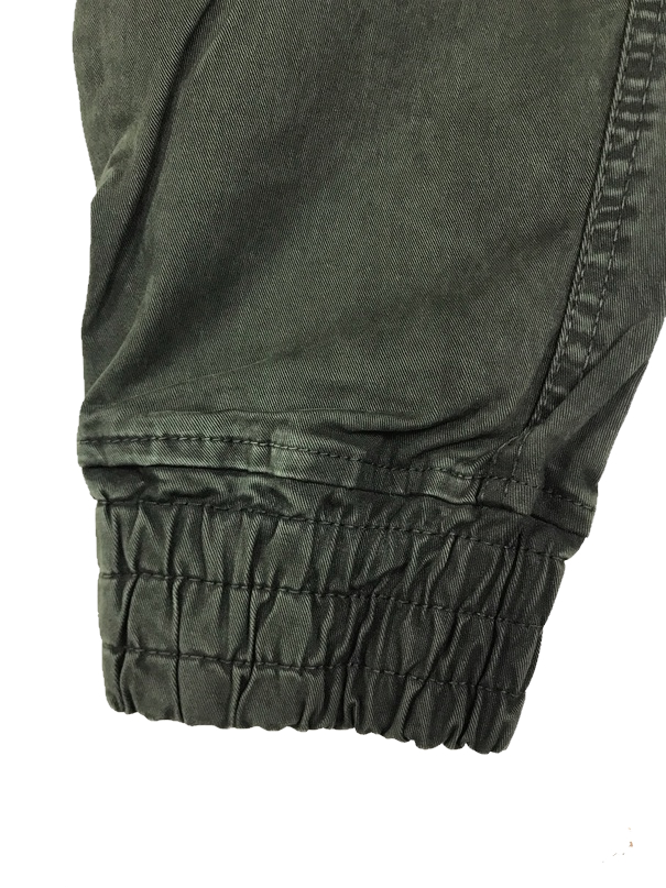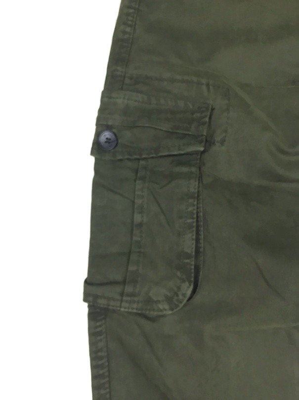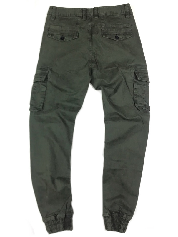 Шесть карманов: два поясных глубоких кармана, два задних вшитых кармана прикрытыx тканью, два боковых накладных кармана закрывающихся при помощи кнопок, в нижней части брюк находится находится утягивающий манжет длиной 5 см.