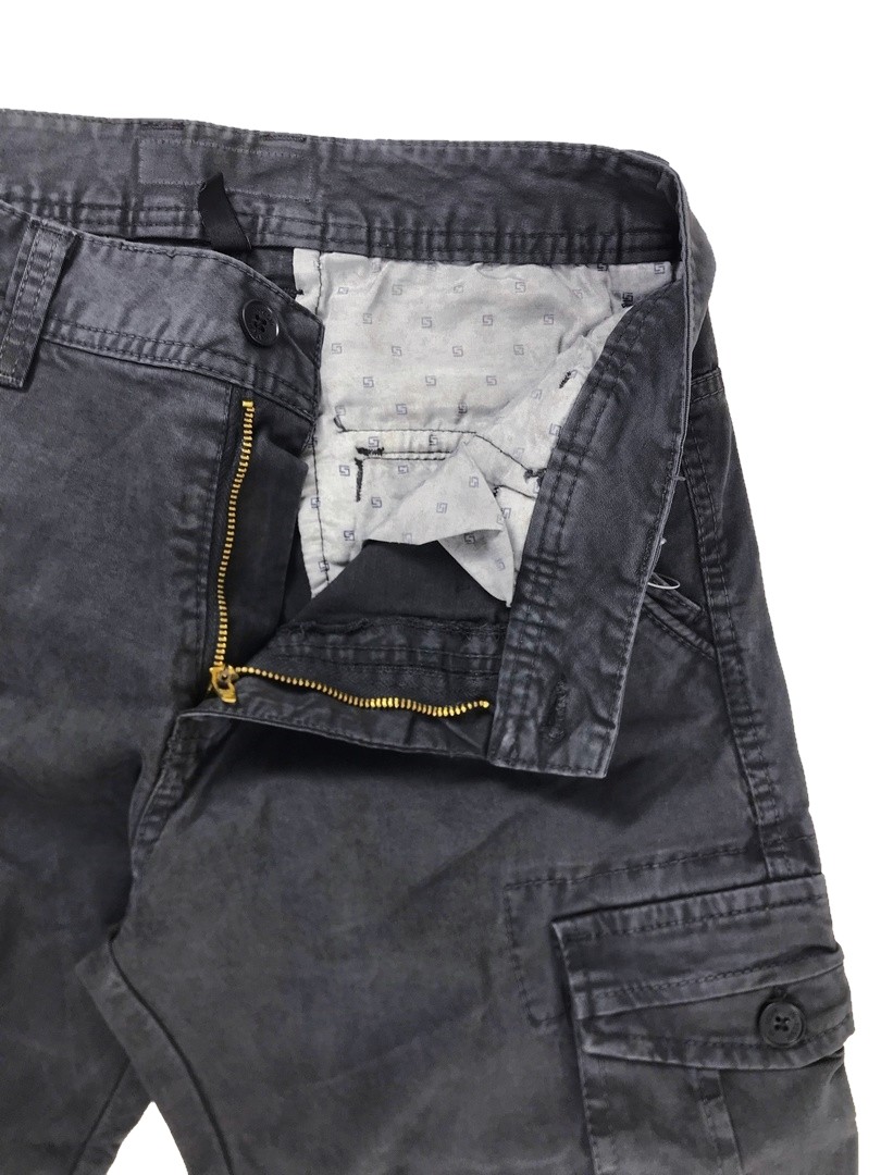 Шесть карманов: два поясных глубоких кармана, два задних вшитых кармана прикрытыx тканью, два боковых накладных кармана закрывающихся при помощи кнопок, в нижней части брюк находится находится утягивающий манжет длиной 5 см.