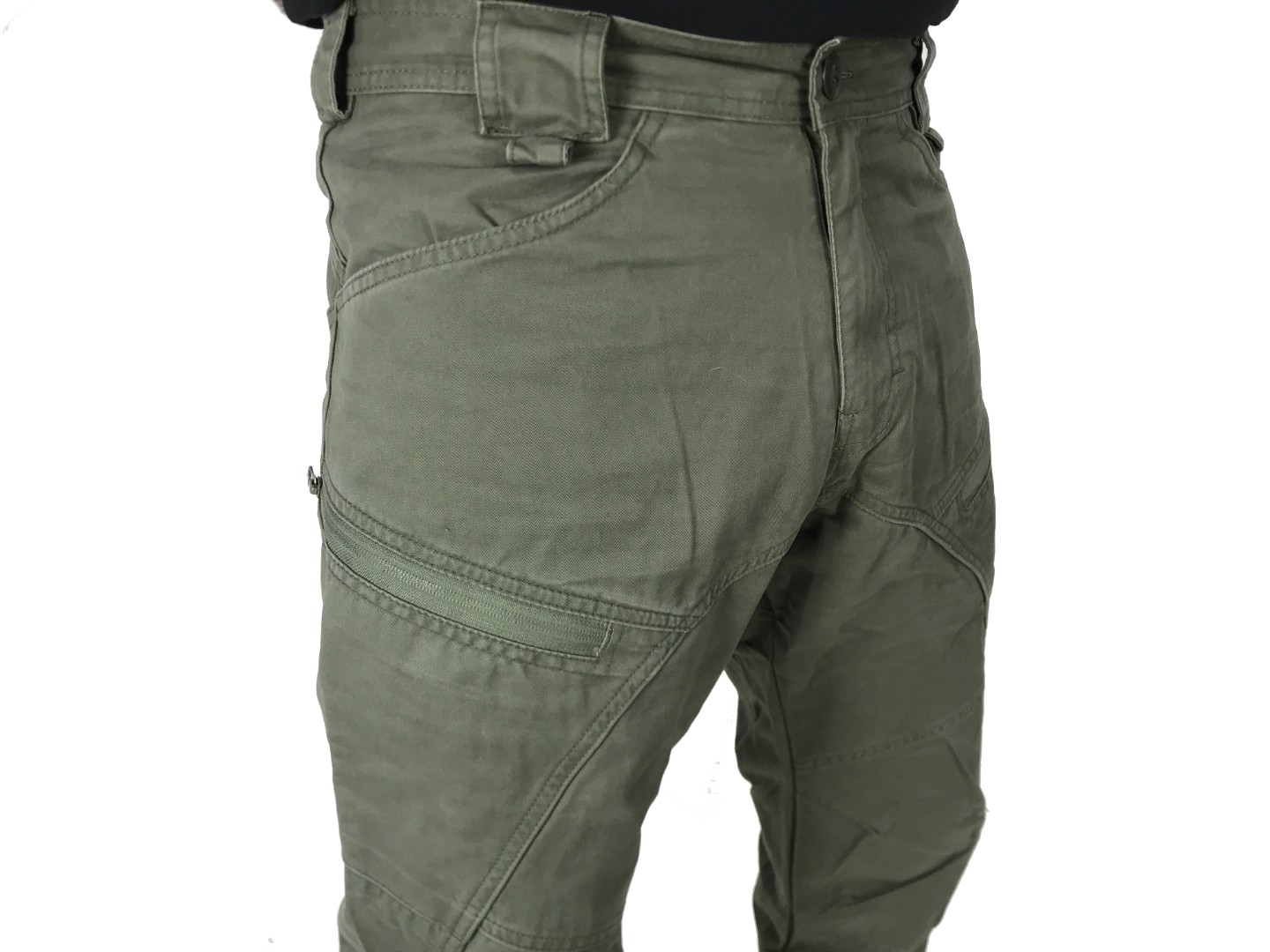 Брюки в виде "варёной" от Российкого производителя Pickap. Брюки имеют удобную посадку анатомический крой, для удобного использования. Паховая область дополнительно усилена тканью и двойным швом. На поясе расположены два больших передних кармана и два задних кармана больших кармана. Сбоку расположены два кармана на молнии и два кармана с клапаном. В нижней части брюк расположена утяжка на резинке