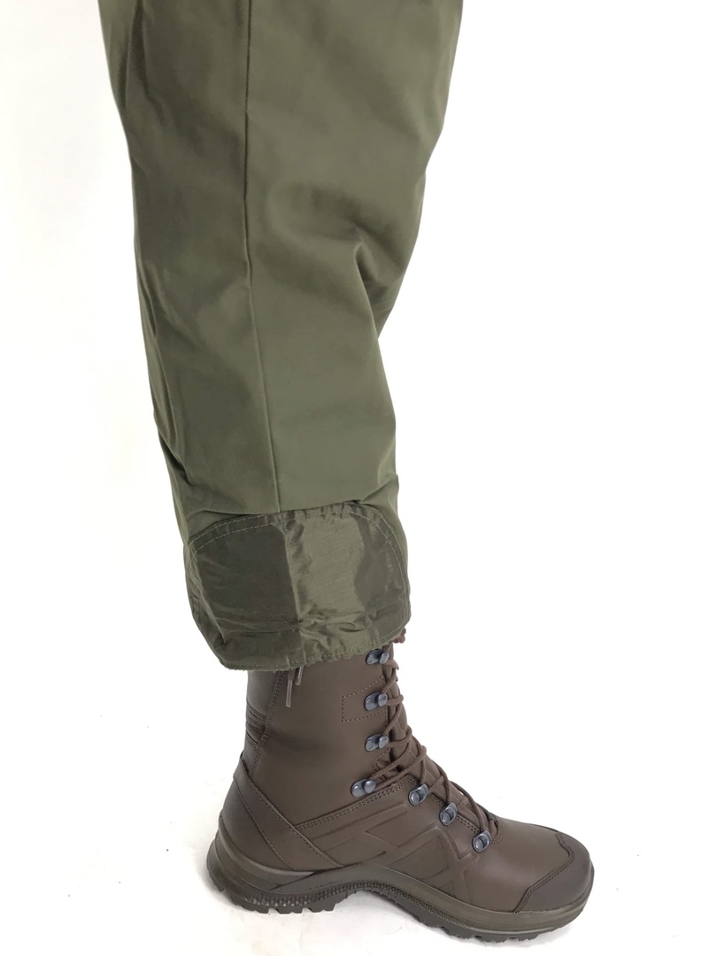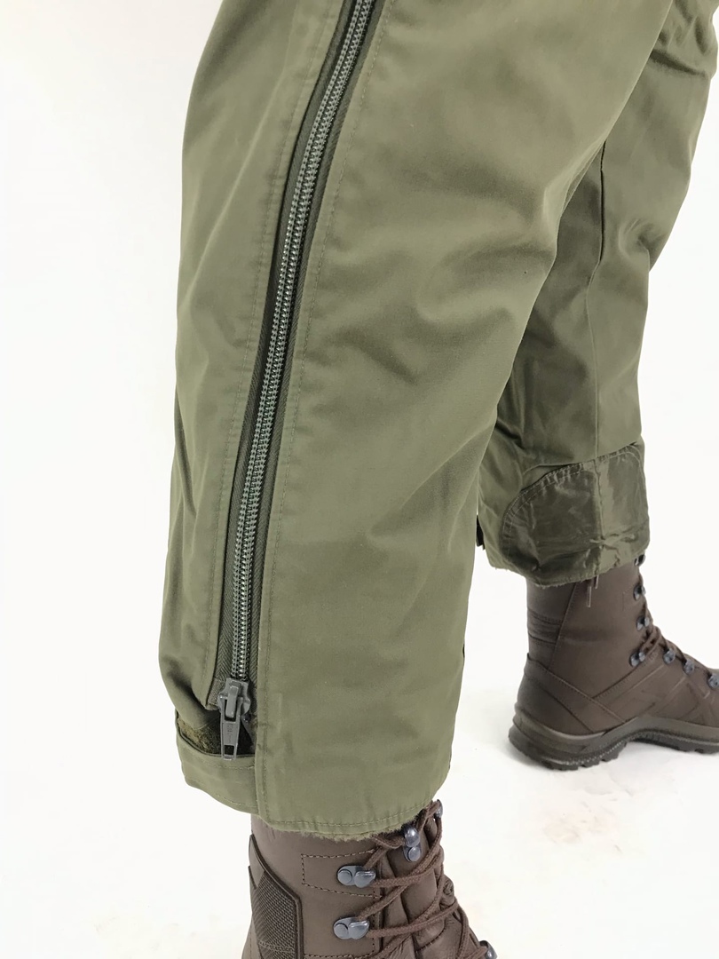 Молнии по бокам брючин от низа до пояса,благодаря которым их можно одевать и снимать не снимая обуви.По бокам утяжка на липучке.Пуговицы для подтяжек BW