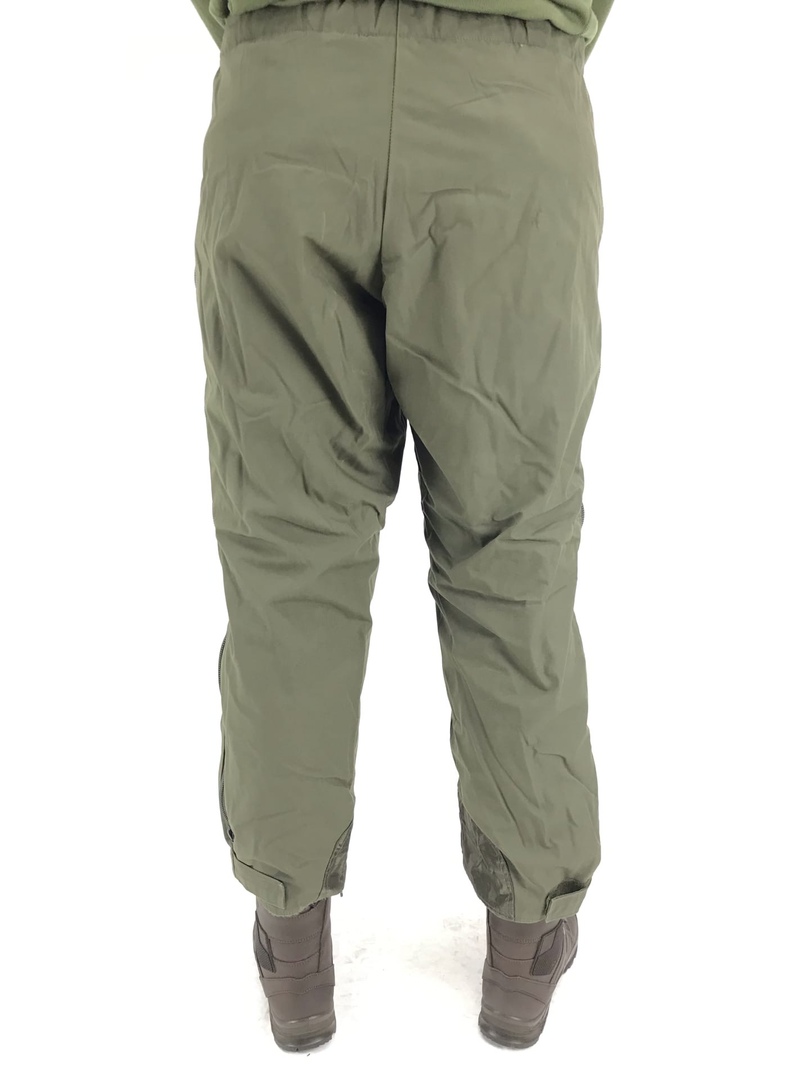 Непромокаемый внешний материал.Искуственный мех внутри.В поясе вшита шнуровка для утяжки.В нижней части брюк по бокам нашита усиленная плотная ткань для меньшего истирания ткани.