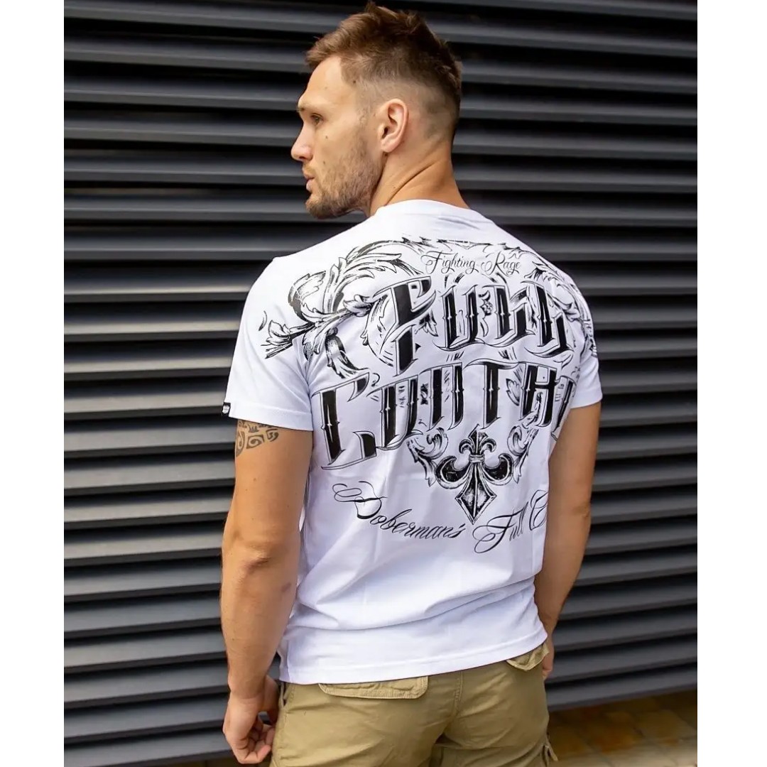 Модель Full Contact TS159. Футболка из высококачественного хлопка с короткими рукавами. На шее надпись Doberman's Full Contact в виде дуги. На спине крупный двухцветный принт: логотип Full Contact в окружении готических орнаментов. Графика проходит через швы обоих рукавов. Сзади на шее небольшая надпись Fighting Rage (Боевая ярость). Футболка стандартного мужского кроя. Красные детали в виде внутренней складки и язычка сбоку с логотипом бренда. Doberman's Aggressive - польский бренд, основанный в 2002 году, выпускающий мужскую и женскую одежду, отличающуюся уникальным смелым дизайном. Бренд сотрудничает с лучшими графическими дизайнерами, которые следят за тем, чтобы дизайн одежды под брендом Doberman's Aggressive был единственным в своем роде и предлагает продукцию высочайшего качества. Принты очень долговечны, не выцветают и не отклеиваются после стирки. Нанесение рисунка на всю продукцию под брендом Doberman's Aggressive, производится методом «Silk Screen Printing» или более знакомое всем название Шелкография. Толщина красочного слоя при таком методе нанесения рисунка может колебаться в пределах от 10 до 100 мкм, что является очень плотным покрытием и обеспечивает эффект объема и монолитности изображения. Как должное, в процессе эксплуатации изделий с такими принтами (носке,уходе), проявляется эффект состаривания, допускается появление трещин к уже имеющимся, задуманных автором, при изготовлении макета. Принты Doberman’s Aggressive дольше других держатся на тканях, сохраняя исходный образ рисунка, что продлевает срок годности при их эксплуатации.