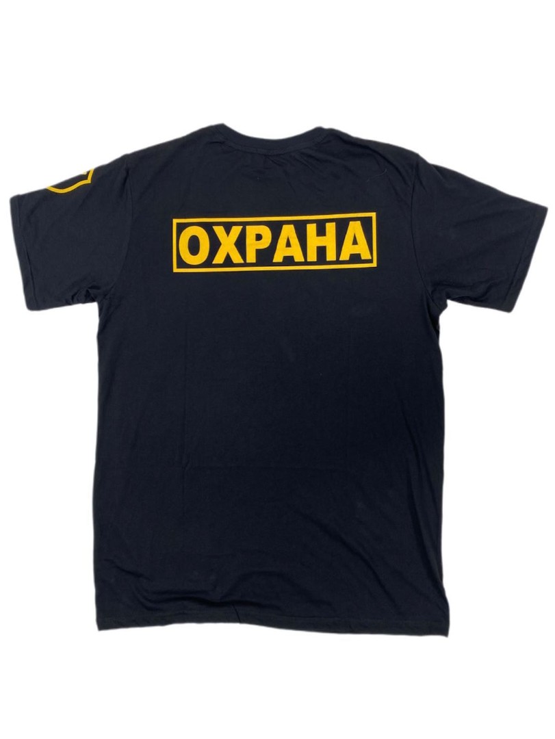 Мужская футболка из 100% хлопка с принтом «ОХРАНА» — комфортная базовая вещь для повседневной носки. Мягкий хлопковый материал обеспечивает отличную воздухопроницаемость и удобство в течение всего дня. Классический прямой крой подходит для любого типа фигуры.