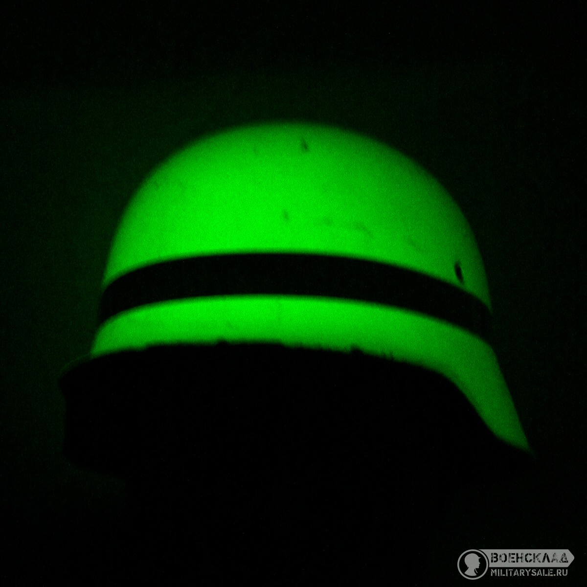 Фосфоресцирующее покрытие желтоватого цвета , набирает свет и в темноте светится со светоотражающей полосой вокруг.