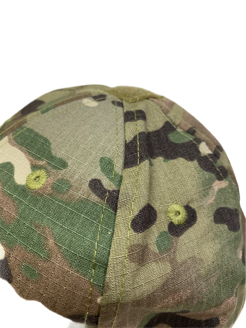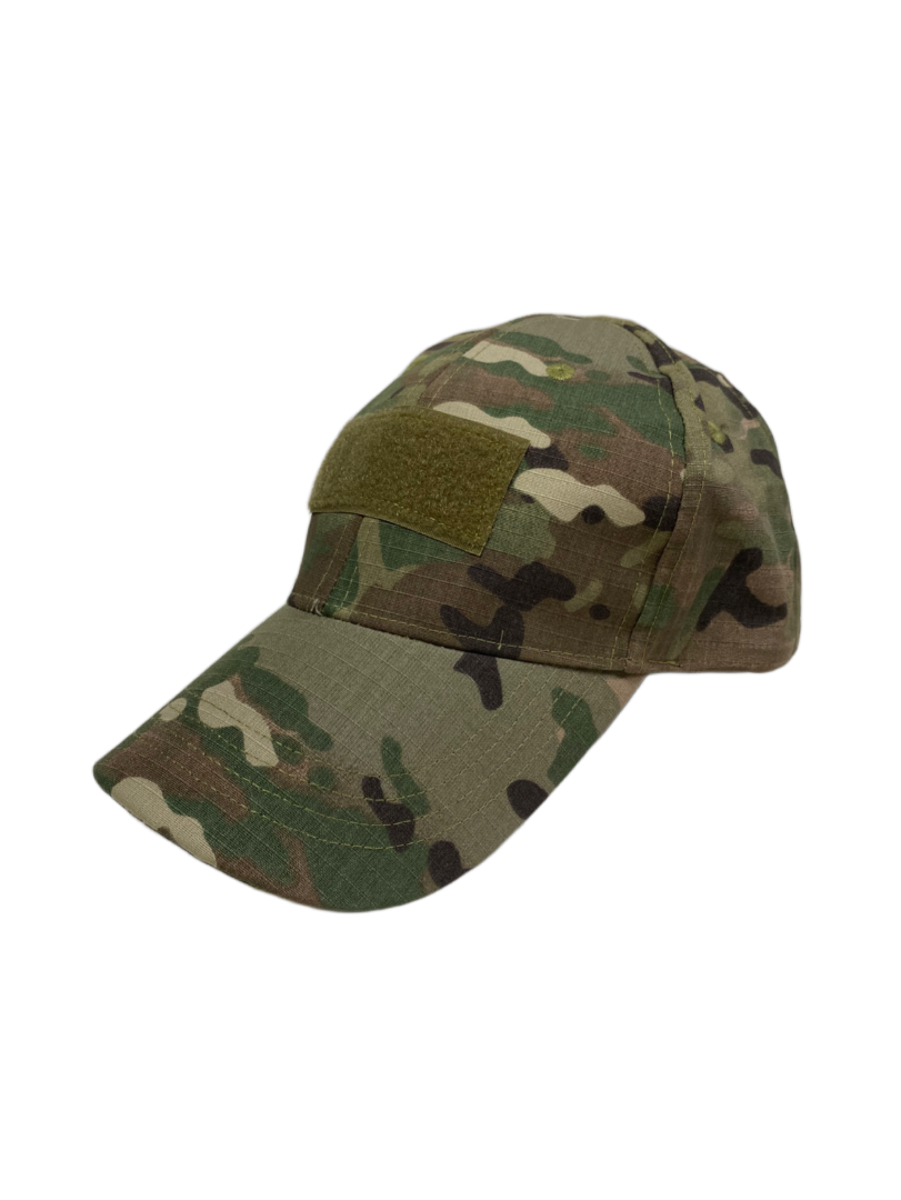 Тактическая кепка в камуфляже «мультикам» выполнена из смесовой ткани Rip-Stop. Регулируемый размер при помощи липучки велкро позволяет в точности подогнать размер кепки. В верхней части расположены небольшие отверстия для вентиляции головы. Панели-велкро разных размеров расположены в передней, верхней и задней части кепки.