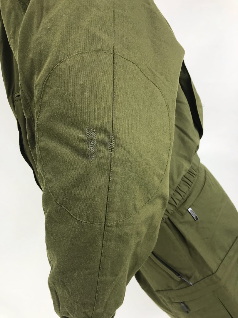 На штанах имеется утяжка-резинка с клапанами,пуговицы для крепления подтяжек BW.Застёжка молния.Колени усилены резиновым материалом и обладают хорошей износоустойчивостью .В нижней части брюк расположена молния,которая позволяет быстро снимать при одетой обуви.В манжет брюк вшита резинка,которая регулируется с помощью клапана.