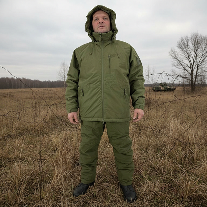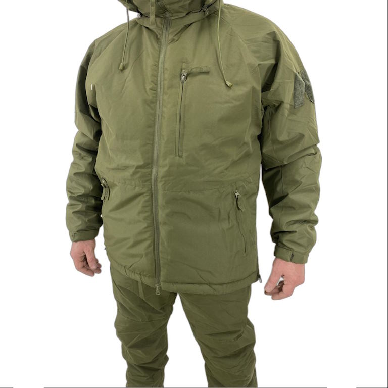 Зимний тактический костюм в цвете олива спроектирован как внешний защитный 7-й слой, который надевается поверх утепляющих уровней экипировки. Конструкция из синтетической ткани с утеплителем обеспечивает защиту от внешних воздействий и сохраняет мобильность при работе в снаряжении. Продуманная система карманов, регулировок и быстрый доступ к надеванию делают комплект удобным для боевых задач, полевых выходов, охоты и рыбалки.
