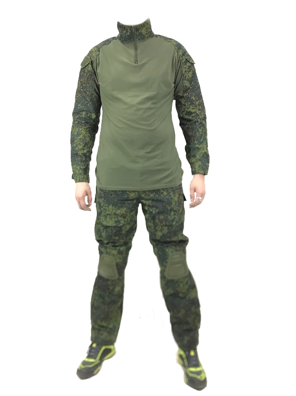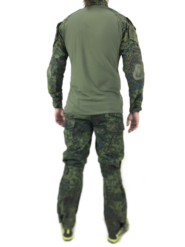 Комплект состоит из кофты (боевой рубахи) и штанов.На передней части штанин расположены наколенники, которые устанавливаются в специальные отсеки. При необходимости наколенники можно снять. Они состоят из двух частей: внутренняя поверхность сделана из плотного, мягкого материала; внешняя – из прочного пластика. В коленях брюки регулируются по обхвату велкро-липучкой.