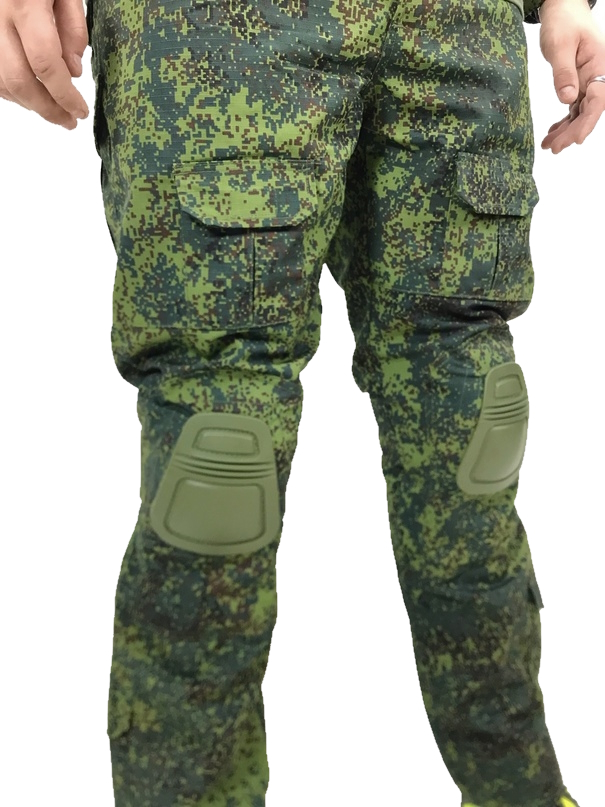 Брюки прямые, застёгиваются на молнию, фиксируются липучкой липучкой. Для фиксации штанов на талии есть возможность установки поясного ремня за счет нашитых шлевок.