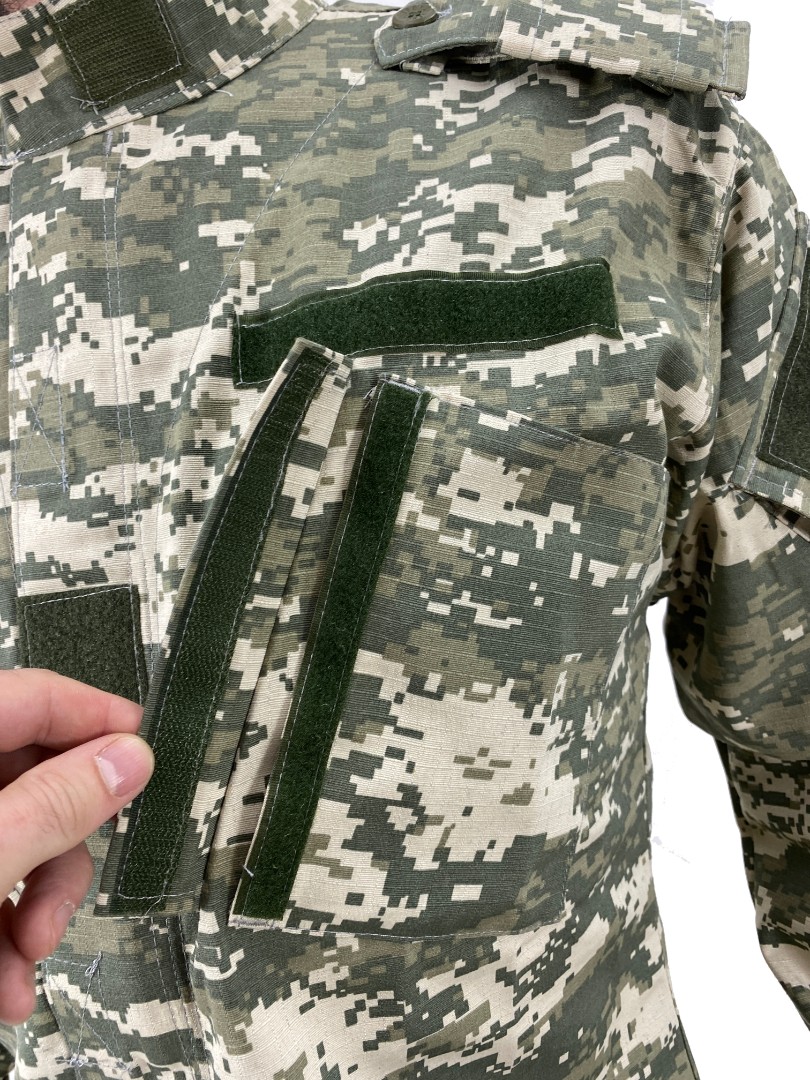 Комплект состоит из куртки и брюк и изготовлен в соответствии с военными стандартами.