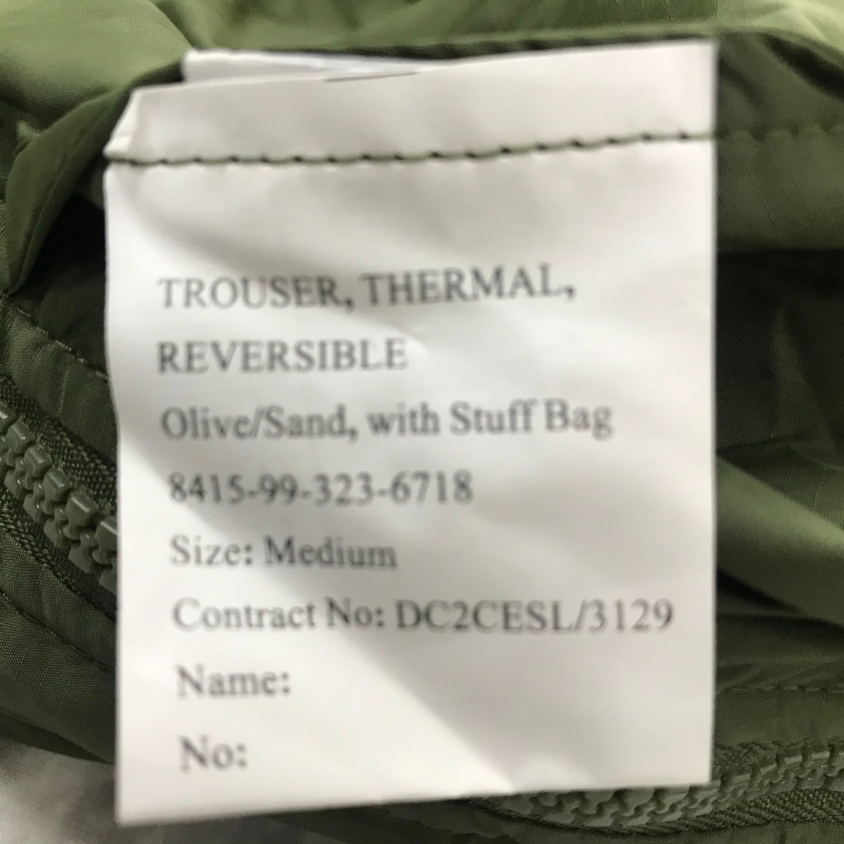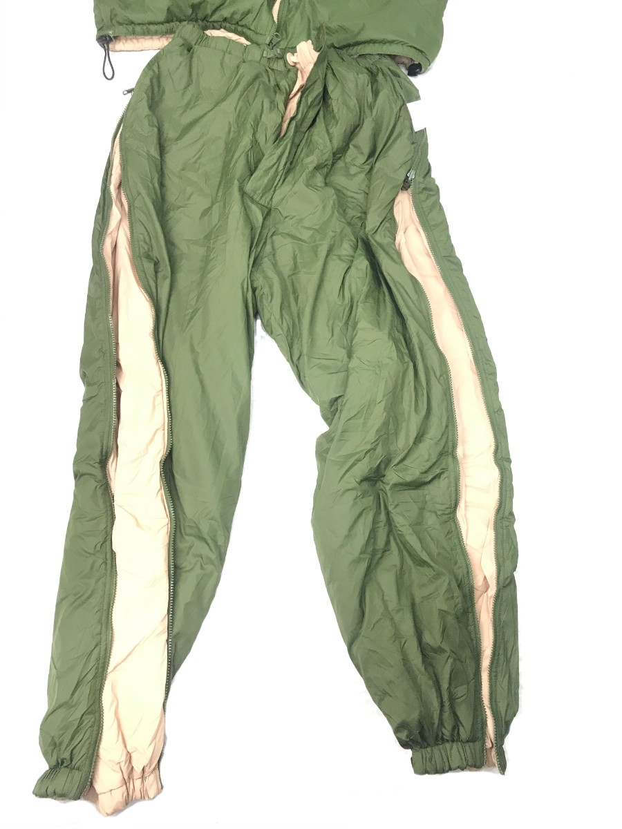 Штаны двусторонние, обе стороны пошиты одинаково. Отличаются только цветом. Одна сторона выполнена в цвете олива, вторая сторона выполнена в песочном цвете. Хотя песочный цвет на столько светлый что по оттенку ближе к белому и отлично подходит для использования как маскхалат зимой. Штаны оборудованы молниями YKK по бокам. Это позволяет снимать и одевать их не снимая обувь. Пояс и нижние манжеты оснащены резинкой. Пояс застегивается на две канадские пуговицы. Штаны комплектуются компрессионными мешками.