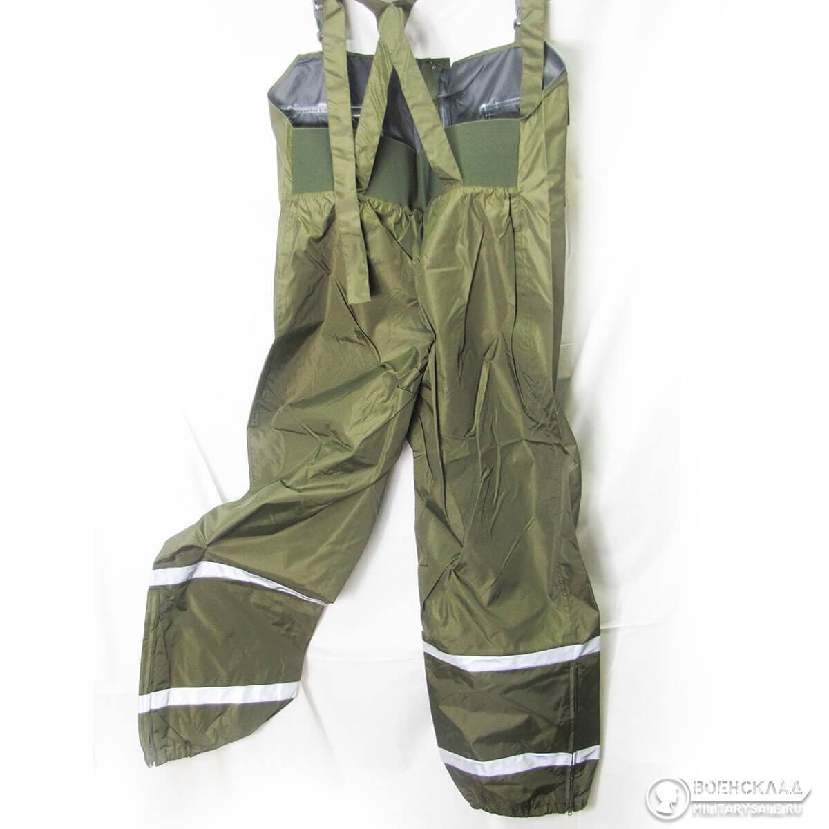 Брюки сделаны полукомбинезоном - на молнии и регулируемых подтяжках, внизу также вшита молния, сзади на поясе широкая резинка.