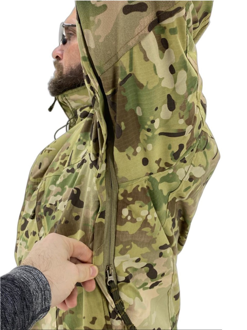 Продуманная конструкция с вентиляцией подмышками помогает регулировать температуру тела при нагрузках, а влагозащитные молнии и утяжки