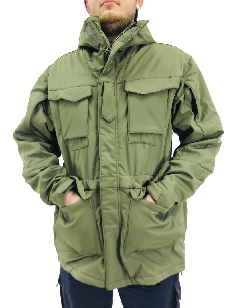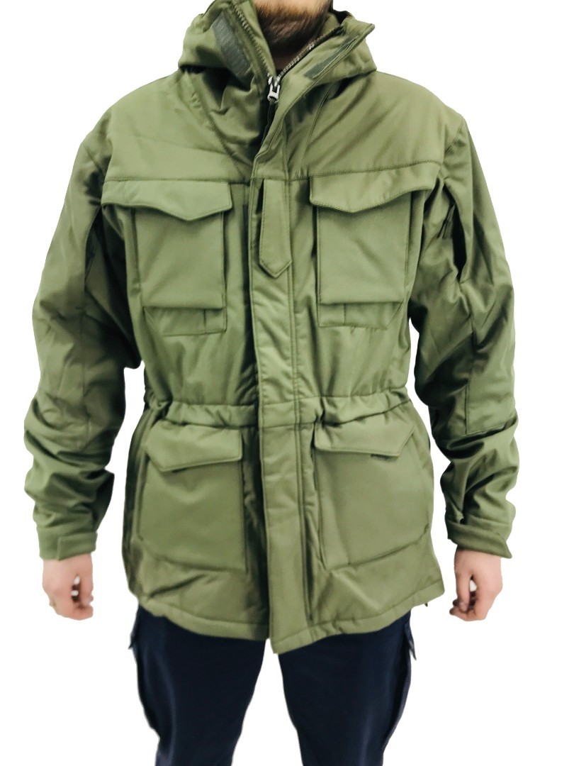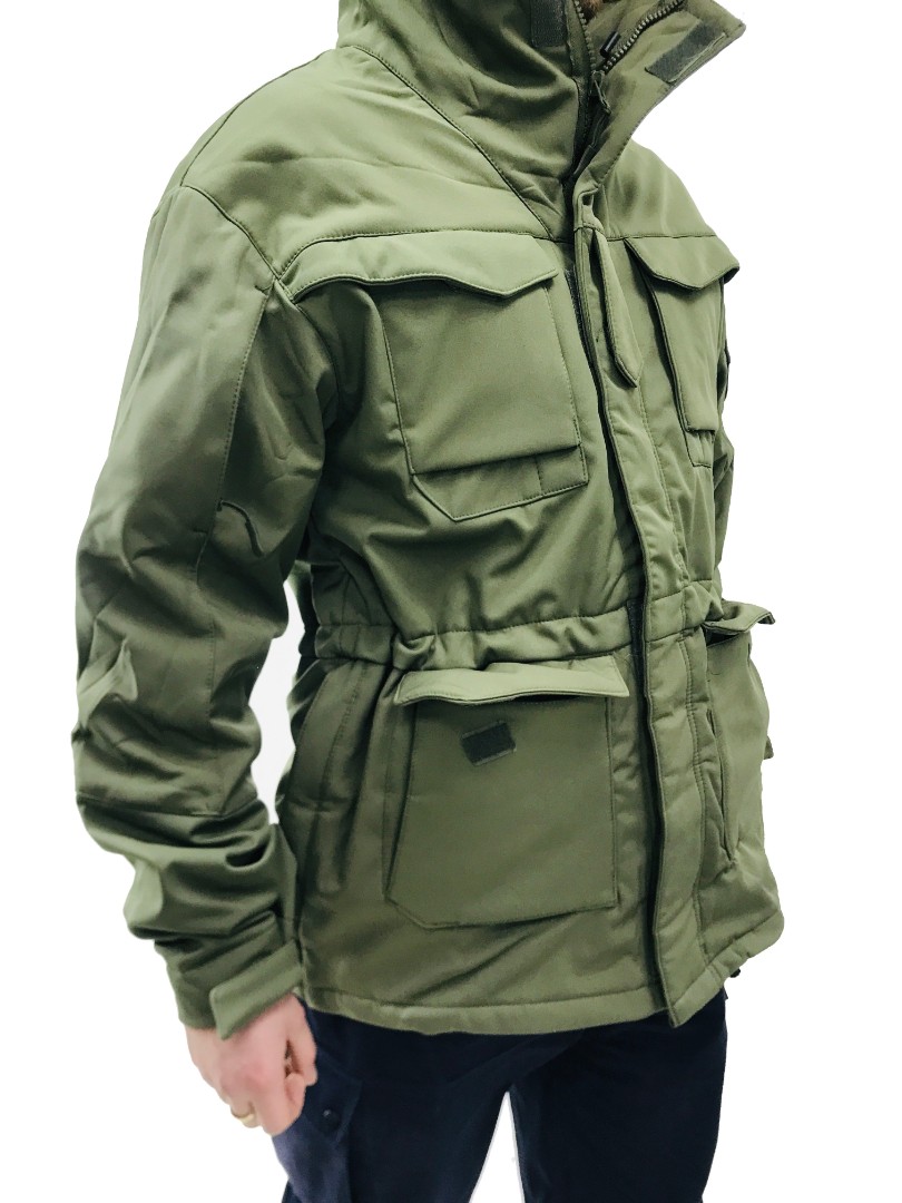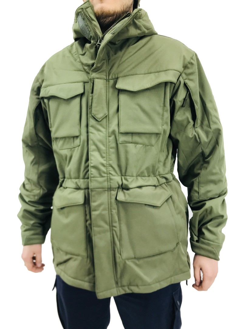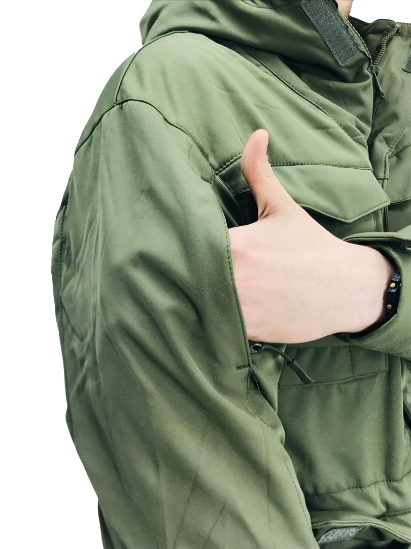 Тактическая куртка Softshell,выполенная в классическом,армейском стиле М-65.Внешний материал Softshell не пропускает влагу,внутренний материал плотный флис с подкладкой сохраняет тепло при сильном ветре и минусовой температуры до - 8 градусов.Капюшон с небольшим козырьком при необходимости сворачивается в воротник.На поясе расположена утяжка для комфортной фиксации куртки по фигуре.По бокам расположены молнии,которые обеспечивают быстрый доступ к оружию,ножику или любой другой необходимой вещи закрепленной на боковой части торса.