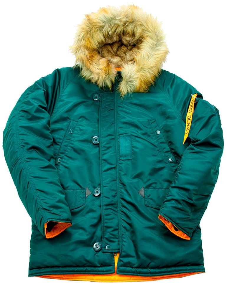 Аляска застёгивается по всей длине на надежный пластиковый замок-молнию (трактор), дополнительно прикрытый ветрозащитным клапаном.