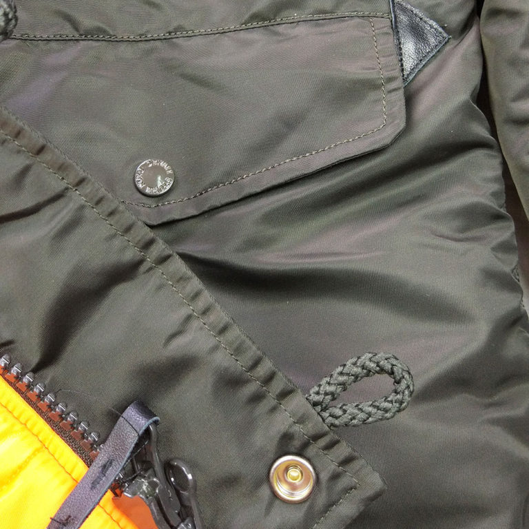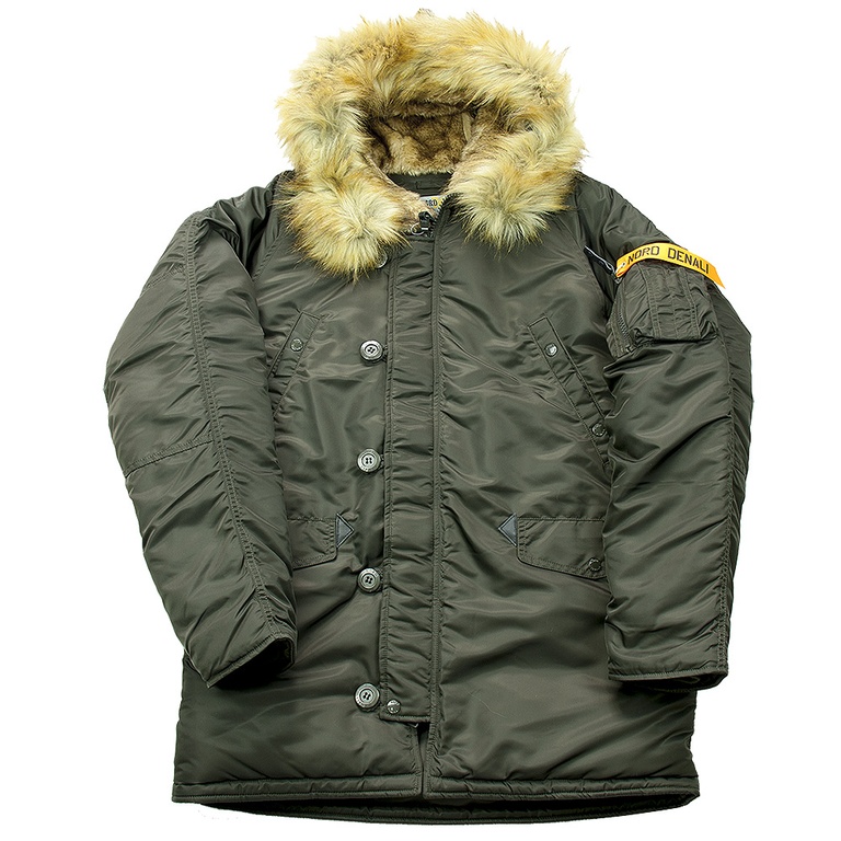 Верх зимней куртки выполнен из прочного авиационного нейлона с водо- и ветрозащитными свойствами и проклеенными швами.