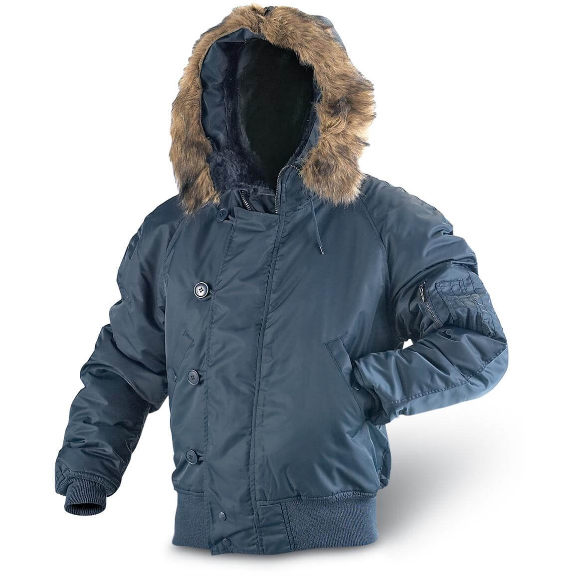 Куртка N2B – одна из самых популярных армейских летных моделей. Этот бомбер часто причисляют к паркам «Аляска» за тёплый подклад и непродуваемую молнию. Влагоотталкивающий материал не даст хозяину такой одежды промокнуть ни в снег, ни в холодный дождь.