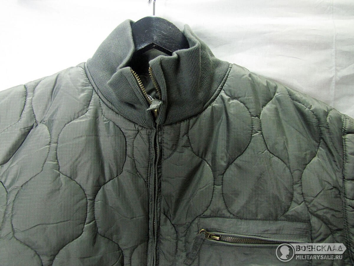 Массивная передняя молния, трикотажные манжеты и воротник.