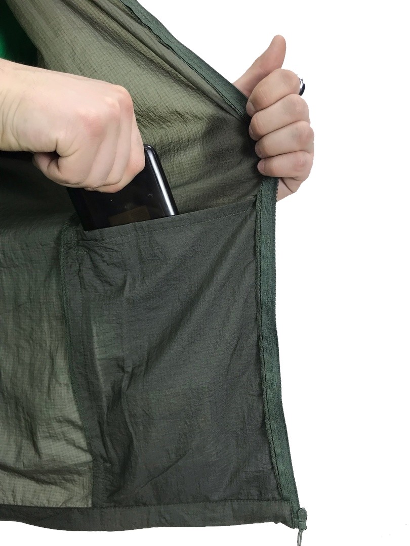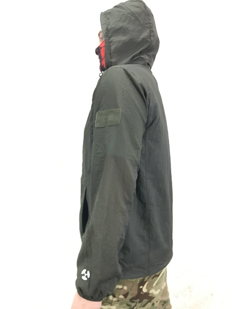 Куртка-ветровка для летней погоды из стопроцентного дышащего нейлона,также куртка облалает водоотталкивающими свойствами.На капюшоне и в нижней части куртки предусмотрена утяжка.