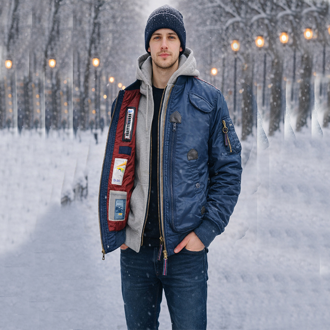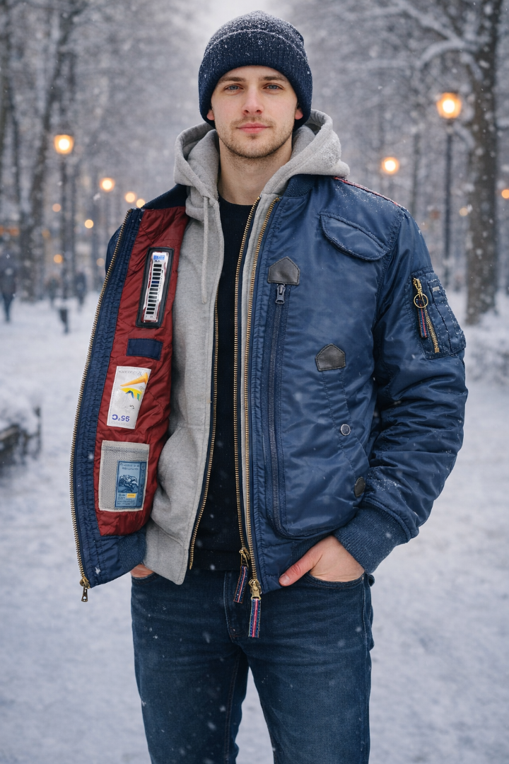 Утеплённая куртка-бомбер Intruder Nord Denali Blue/Red — классика армейского стиля и надёжная защита от холода