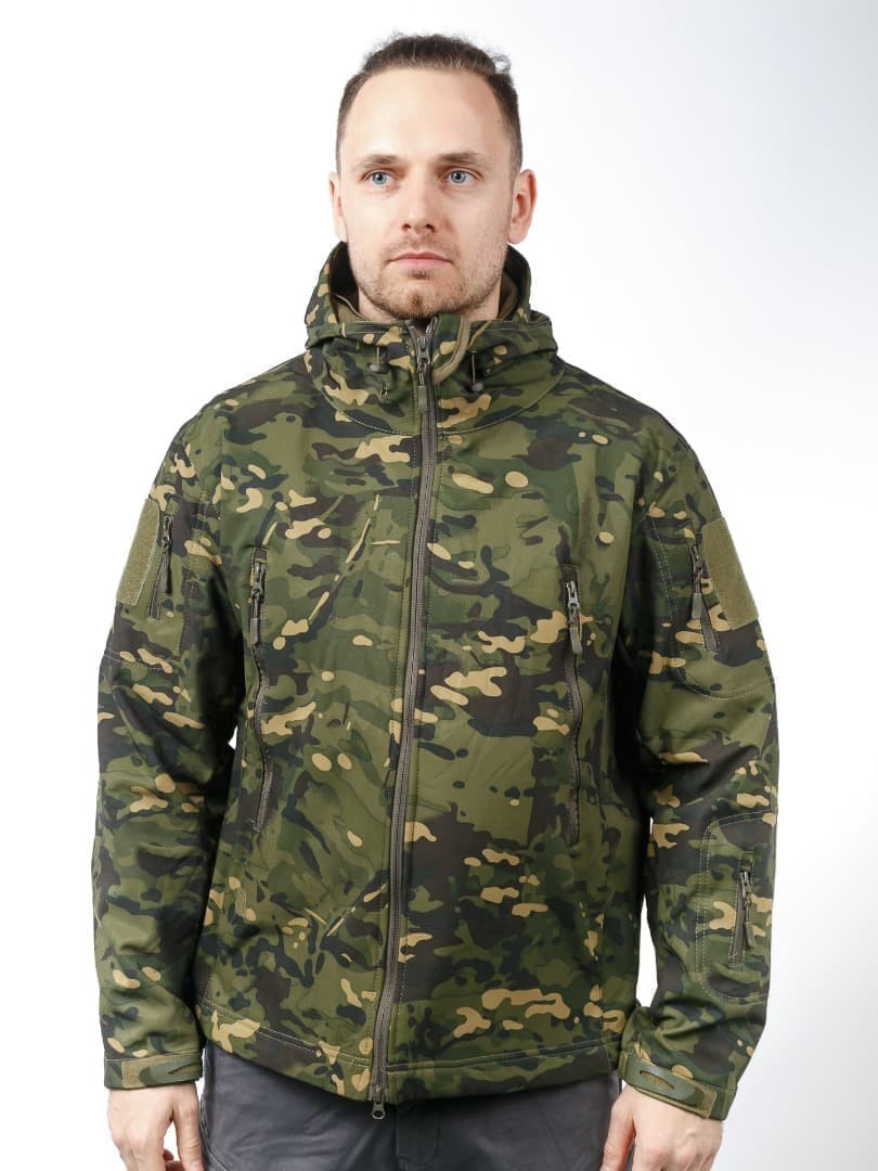 Куртка Shark Softshell, multicam dark камуфляж с тефлоновым покрытием, водоотталкивающая, с подкладкой из толстого флиса, с ветрозащитными молниями, прорезями под мышками для работников силовых структур и военных. а также для охоты, рыбалки, туризма и тактических игр.