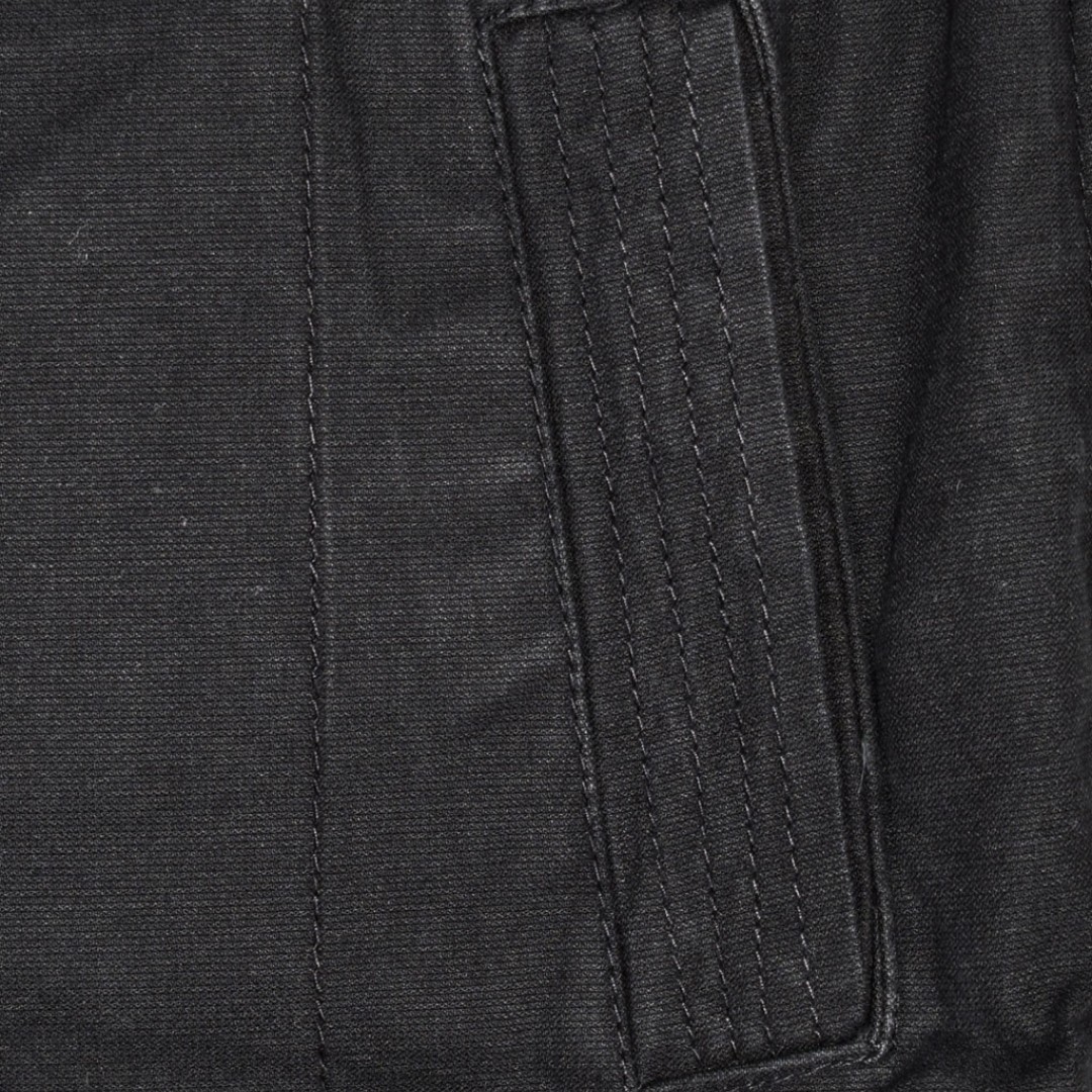 Куртка выполнена из сверхпрочного и плотного 100% хлопка, который хорошо пропускает воздух и обеспечивает комфорт при длительной носке. Материал имеет оригинальный винтажный эффект Sprayed-Used-Look с лёгкой потертостью и размытыми оттенками, благодаря чему куртка выглядит стильно и необычно.