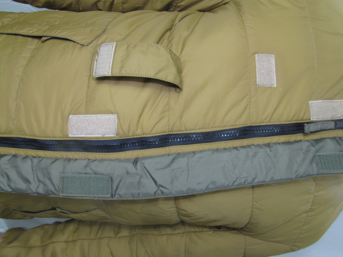 части куртки наиболее подверженные нагрузкам и износу (плечи, тыльная часть рукава, часть ветрозащитного клапана соприкасающаяся с молнией) усиленны кордурой, что позволяет отлично пользоваться утеплителем как внешним слоем утепления (усиления плечей и рукавов имеет только оливковая сторона куртки);