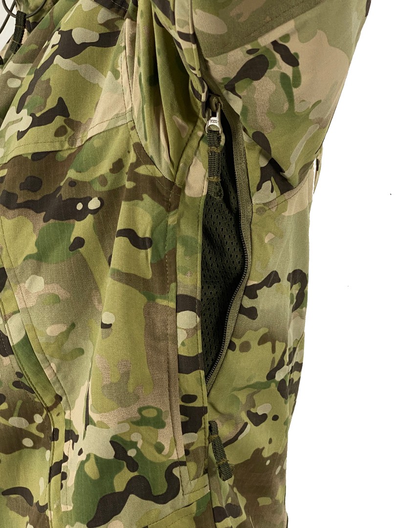 В верхней части куртки расположен капюшон с утяжками спереди и сзади. Верхняя часть молнии прикрыта тканью для предотвращения натирания подбородка. Два больших передних кармана оснащены специальной молнией, которая не пропускает воду. На рукавах расположены панели велкро для крепления патчей и небольшие карманы на молнии. Под мышками расположена молния для лучшей воздухопропускаемости. Манжеты рукавов отлично фиксируются за счет удобной и эластичной утяжки. Нижняя часть куртки утягивается при помощи двух фиксаторов, расположенных по бокам.