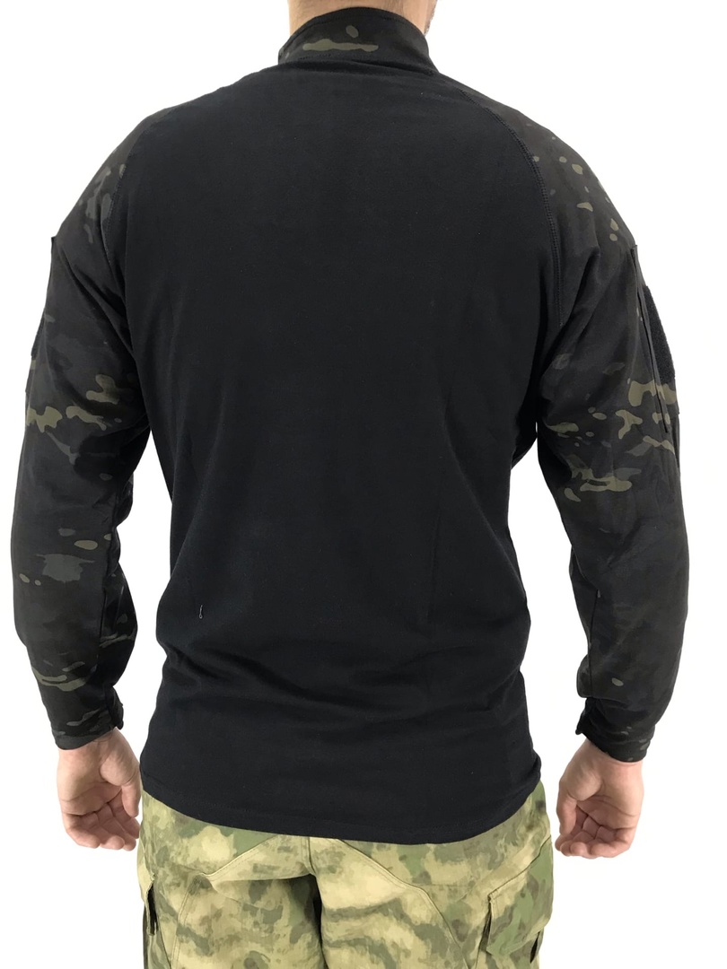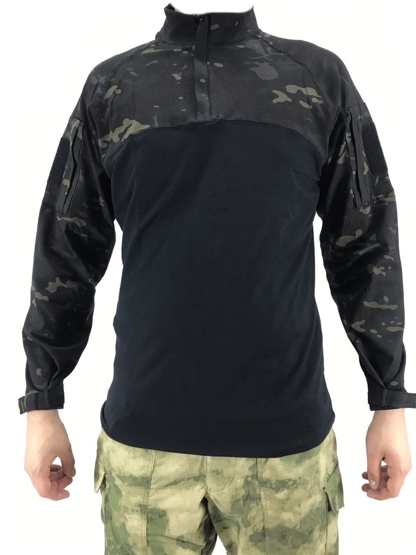 Военная рубашка боевая черный мультикам – это модификация классической тактической рубахи под бронежилет в стильном черном цвете. Камуфляжная ткань, как и в аналогичных моделях – на рукавах и груди.