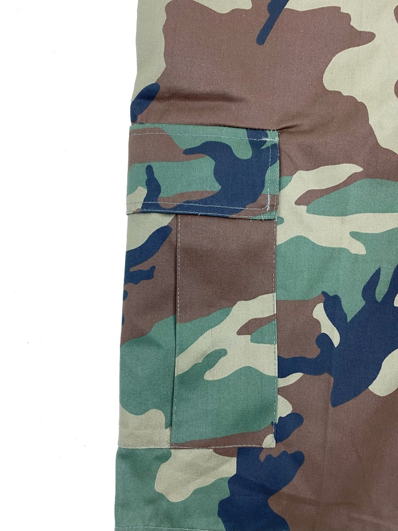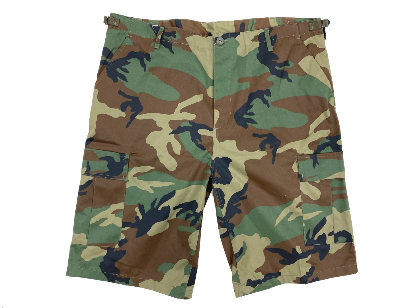 По бокам на поясе расположены утяжки для регулировки, размера. На шортах расположены 6 карманов: два кармана на поясе, два задних кармана на пуговицах и прикрытых тканью, два боковых накладных кармана на пуговицах.