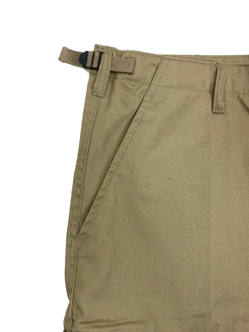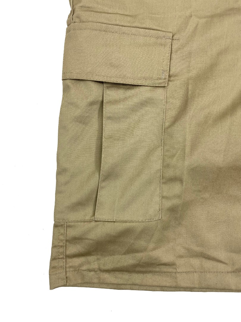 Шорты от Немецкой фирмы Mil-Tec выполнены из смесовой ткани.По бокам на поясе расположены утяжки для регулировки, размера.На шортах расположены шесть карманов:два кармана на поясе,два задних кармана на пуговицах и прикрытых тканью,два боковых накладных кармана на пуговицах.
