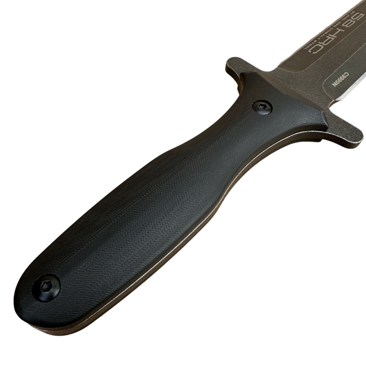 Extrema Ratio Suppressor Operativo — профессиональный тактический нож с фиксированным клинком, созданный для выполнения боевых, тактических и полевых задач. Разработан с учетом требований военных подразделений и силовых структур. Изготовлен из кобальтовой стали Böhler N690Co с твердостью 58 HRC, что обеспечивает длительное сохранение остроты, устойчивость к износу и высокую прочность. Симметричный клинок длиной 19 см выдерживает поперечные нагрузки до 150 кг, а массивная двухсторонняя гарда гарантирует безопасность руки даже при силовых ударах.