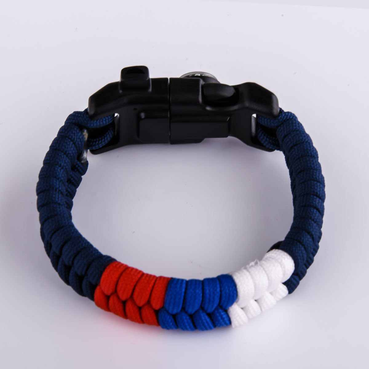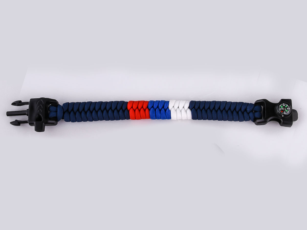 Тактический браслет из прочного нейлонового шнура, выполненный в плетении «рыбий хвост», — это не просто аксессуар, а компактный многофункциональный инструмент. В центре — вставка с российским триколором, подчеркивающая патриотичный стиль владельца. Застёжка-фастекс из ударопрочного пластика оснащена встроенным свистком для подачи сигнала, мини-компасом для ориентирования и огнивом для разжигания огня в полевых условиях. Идеален для военных, охотников, рыбаков, туристов, страйкболистов и любителей стиля милитари.