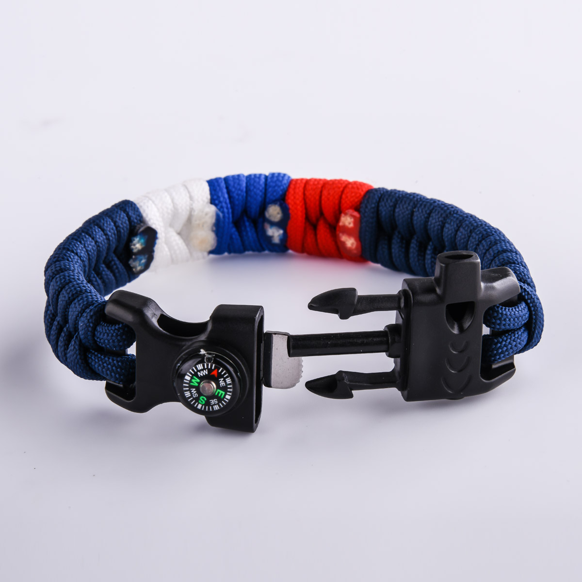✔️ Многофункциональная застёжка: свисток (громкость до 100 дБ), мини-компас и огниво.