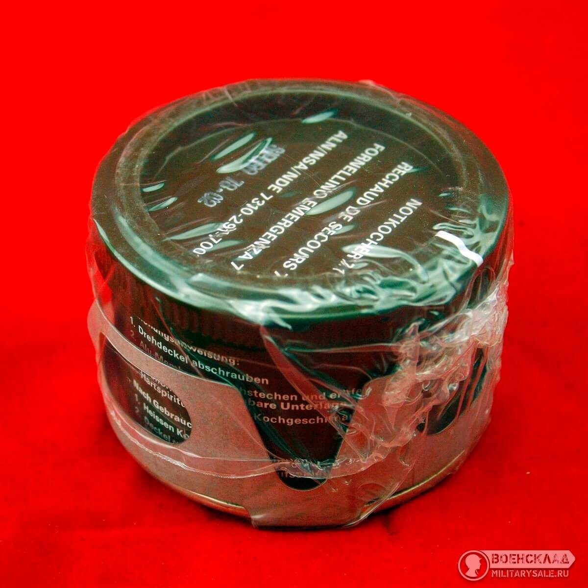 Даёт яркое, устойчивое пламя без копоти; ресурс-приготовление в полевых условиях 6-8 блюд.