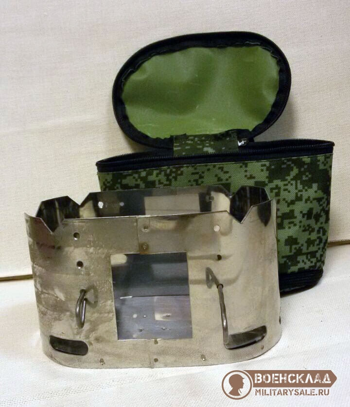 - Ограничители и отверстия в печке на разном уровне позволят приготовить пищу как в армейском котелке, так и в его крышке