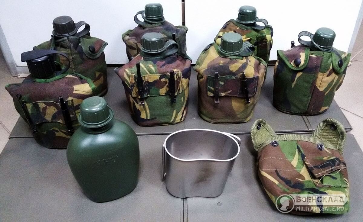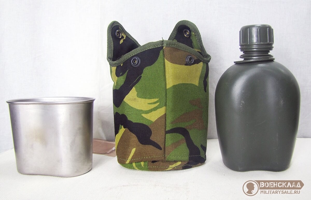 В комплекте: фляга зеленого цвета, стакан из нержавеющей стали, чехол на флягу в расцветке DPM.