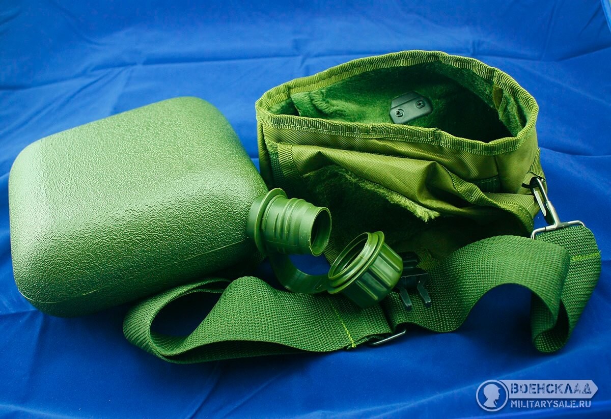 Оливковый нейлоновый подсумок-чехол военного образца для двухквартовой фляги c регулируемым плечевым ремнем.
