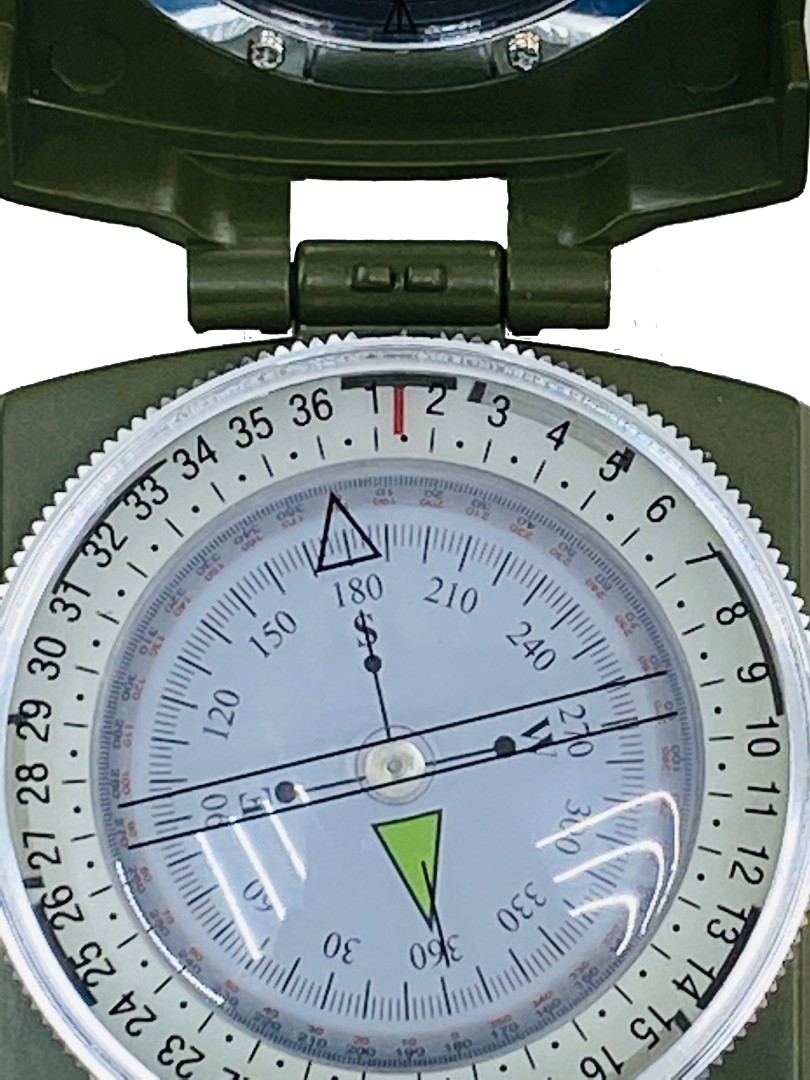 Металлический корпус хорошо защищает конструкцию компаса от дорожных неприятностей. Циферблат находится в стабилизирующей жидкости, которая снижает чувствительность магнитной стрелки к колебаниям. На лимб нанесены две шкалы делений: мили и градусы. Обозначения сторон света выделены краской, светящейся в темноте. На крышке компаса есть визирное отверстие и нить. Лупа в нижней части компаса позволяет.
