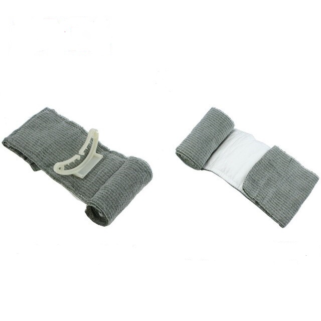 Изделие упаковано в двойную вакуумную упаковку, позволяющую сохранять стерильность при жестких условиях хранения и транспортировки. На упаковку нанесена инструкция по применению в отличии от прочих подобных средств, компрессионный бандаж может применяться одной рукой. Подходит для перевязки любой конечности: верхней, нижней, головы и тд. в том числе и на сложных участках, например покатых и изогнутых, как шея, пах, подмышки и т.п.